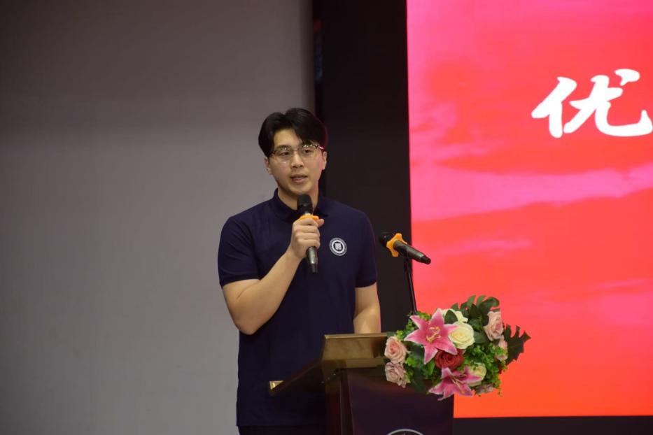 随后,优秀学生党员代表、经济统计学2201班徐敬梓学长作为优秀学生党员代表发言,讲述自己的求学心路,分享了三点心得:一是胸怀梦想,锚定外语+商科成长坐标;二是珍惜身边人,把握实践成长机遇;三是牢记责任,担当国际视野。鼓励大家结合个人梦想与时代使命,用青春与汗水在国商书写无悔篇章。