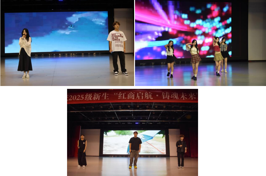 典礼最后,青春的活力在舞台上绽放,新生与学长学姐们演绎了精彩的文艺节目,为典礼注入蓬勃生机。歌曲合唱《如果可以》、PP舞社活力四射的舞蹈、青春歌曲联唱等节目,一次次点燃现场气氛,展现了国商学子的多才多艺与蓬勃朝气。