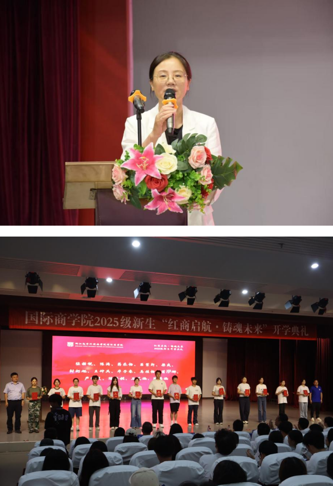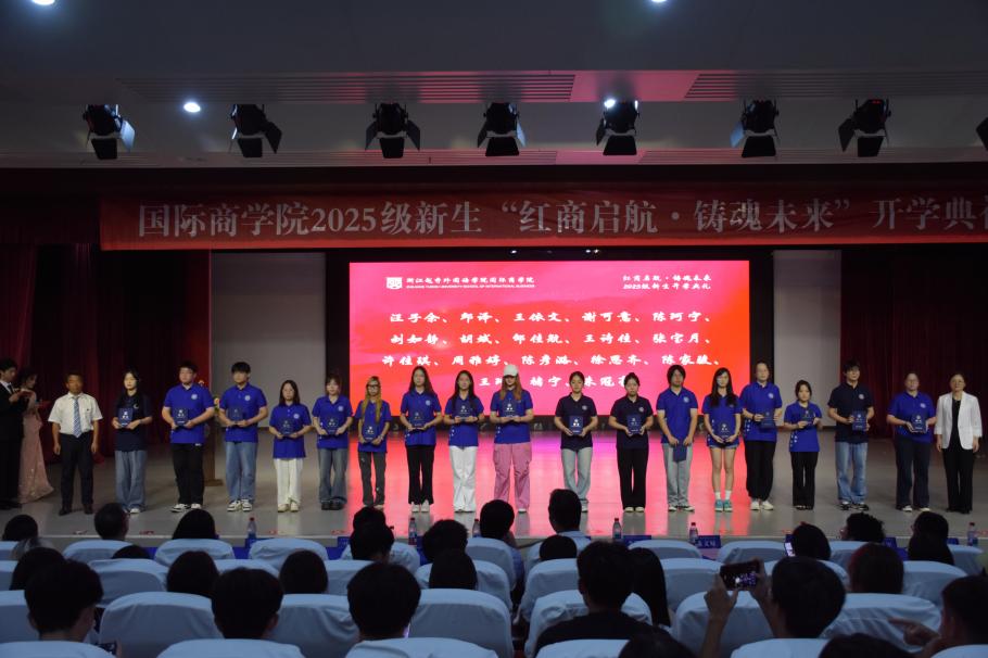 9月28日晚,国际商学院在镜湖剧场举办了2025级新生“红商启航·铸魂未来”开学典礼暨院长新生第一课活动。院长李晓明教授、党委书记施文妹教授、副院长王龙、余韦老师、副书记凌玮老师,各系主任、两办负责人以及新生班辅导员、班主任出席本次典礼。
