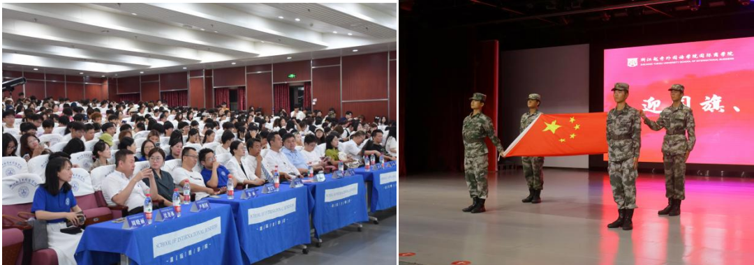 开学典礼围绕“红商启航·铸魂未来”这一主题,分为三个篇章展开——传承•启航篇、铸魂•担当篇、青春•筑梦篇。崭新的起点,呼唤历史的回响;光荣的传承,照亮前行的航向。典礼伊始,全体师生起立迎国旗、奏唱国歌,庄严的旋律中,家国情怀与青春使命在剧场内交融。