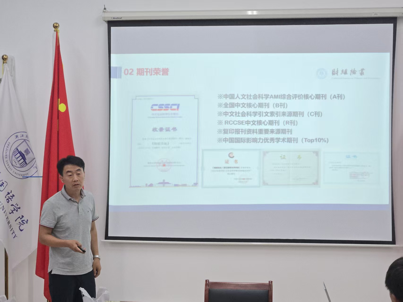 邵慰教授系统介绍了《财经论丛》的办刊历程、期刊荣誉、栏目设置及录用情况。他特别强调了《财经论丛》作为国内重要经管类学术期刊的定位与特色,包括“数智管理”“政府管制”“市场营销”等特色栏目,以及“主编的话”等思想类栏目的设置。邵教授还详细介绍了期刊在作者服务方面的创新举措,如集体初审制、快速审稿流程等,致力于打造“作者友好型”学术平台。