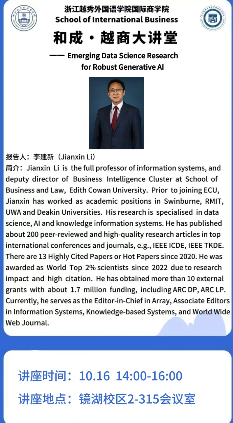 【和成·越商大讲堂】李建新:Emerging Data Science Research for Robust Generative Al