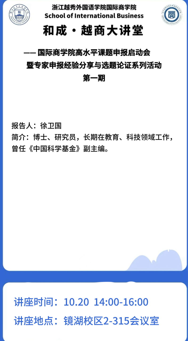 【和成·越商大讲堂】徐卫国:国际商学院高水平课题申报启动会暨专家申报经验分享与选题论证系列活动第一期