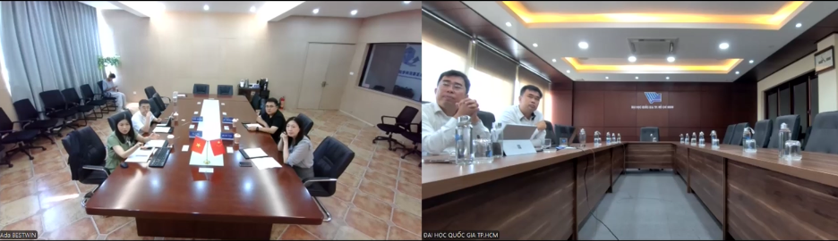 10月15日上午,浙江越秀外国语学院国际商学院与越南胡志明市国家大学通过Zoom平台举行国际合作交流会议。浙江越秀外国语学院国际交流处副处长余玲、国际商学院副院长王佳桐、教师代表黄瑶、柳春鹏,以及越南胡志明市国家大学发展部门副处长Nguyen Thai Binh Long等相关负责人出席会议。会议由王佳桐副院长主持。