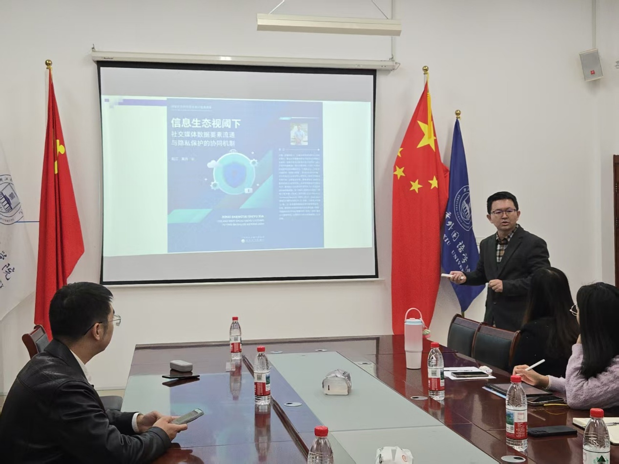 2025年10月22日下午,国际商学院邀请绍兴文理学院副教授、校聘三级岗教授、特聘研究员、硕士生导师、商学院企管系主任、国家社科基金同行评审专家、成果鉴定专家、教育部学位与研究生教育发展中心学位论文评审专家赵江教授为老师们带来第二期高水平课题申报启动会暨专家申报经验分享与选题论证系列活动。