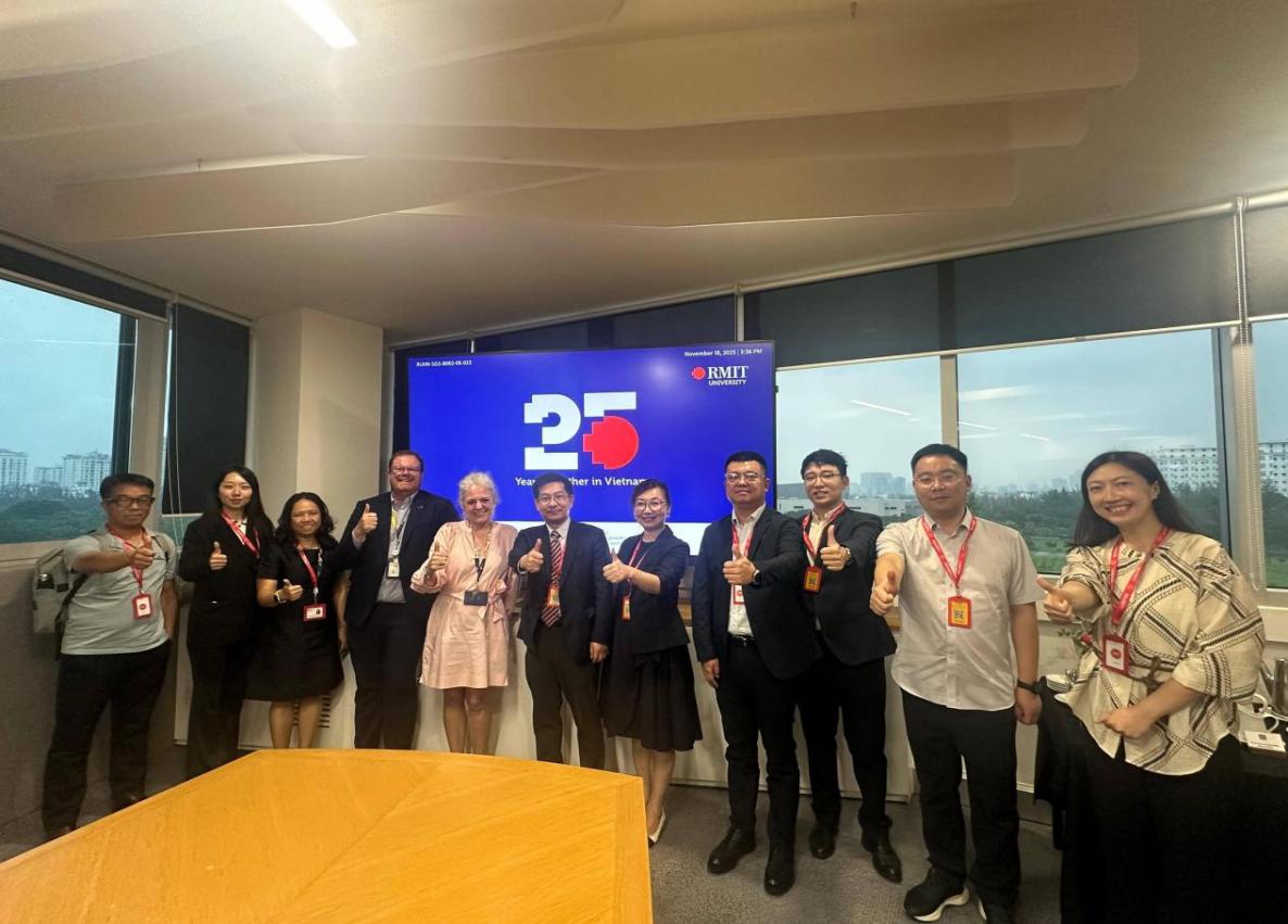 图3:代表团与教育部留服中心官员在访问墨尔本皇家理工大学越南校区期间合影。