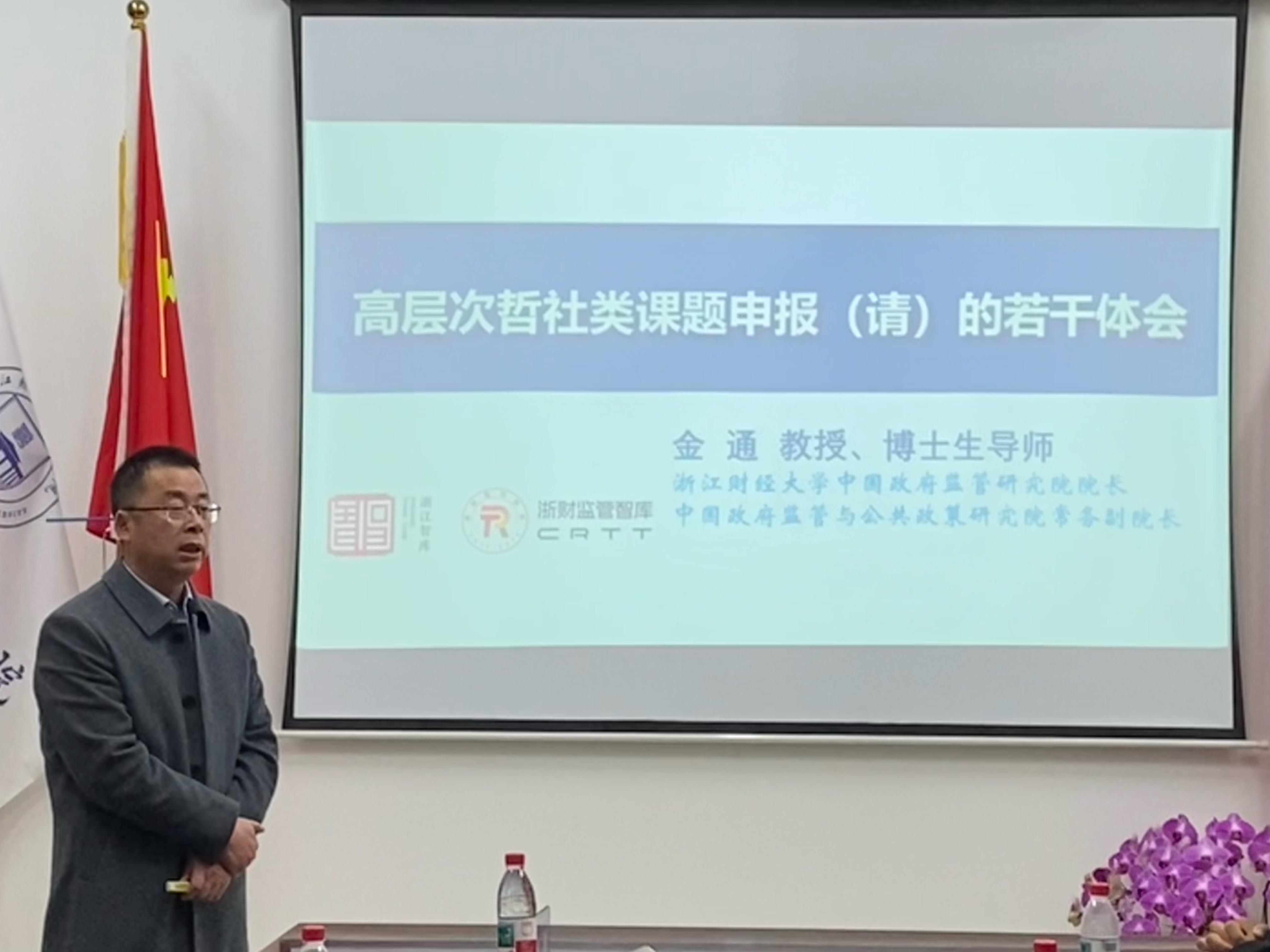 2025年11月25日下午,国际商学院邀请浙江财经大学中国政府监管研究院院长、浙江省新型重点专业智库“中国政府监管与公共政策研究院”常务副院长金通教授为老师们带来一场关于高层次哲社类课题申报的深度分享。
