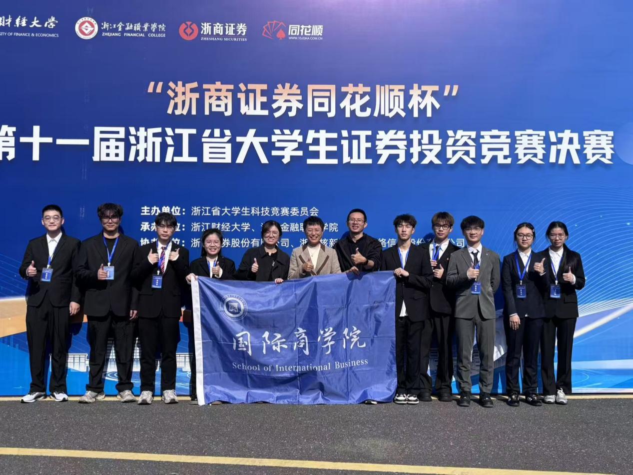 近日,在第十一届浙江省大学生证券投资竞赛中,我校国际商学院投资学专业学生、金融工程专业学生在比赛中表现出色,在校赛、省复赛、省决赛中过关斩将,经过近5个月的角逐,展现出扎实的投资素养和出色的实践应用能力,斩获: