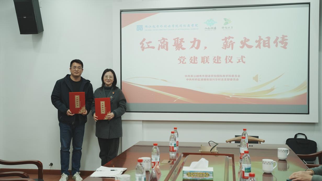 冬阳暖照鉴湖岸,党建聚力谱新篇。12月25日下午,中共浙江越秀外国语学院国际商学院委员会与中共柯桥区湖塘街道兴华村党总支委员会举行党建联建仪式暨“党建联建聚合力,红色传承促发展”主题党日活动。国际商学院党员同志在国际商学院院长李晓明、党委书记施文妹等党政领导的带领下齐聚鉴湖之畔,通过实地参观、签约共建、座谈交流的方式与兴华村党总支深化校地合作情谊,共绘乡村振兴蓝图。活动受到了湖塘街道相关负责人裘可钦、兴华村党总支书记,村委会主任沈建强的热情接待。