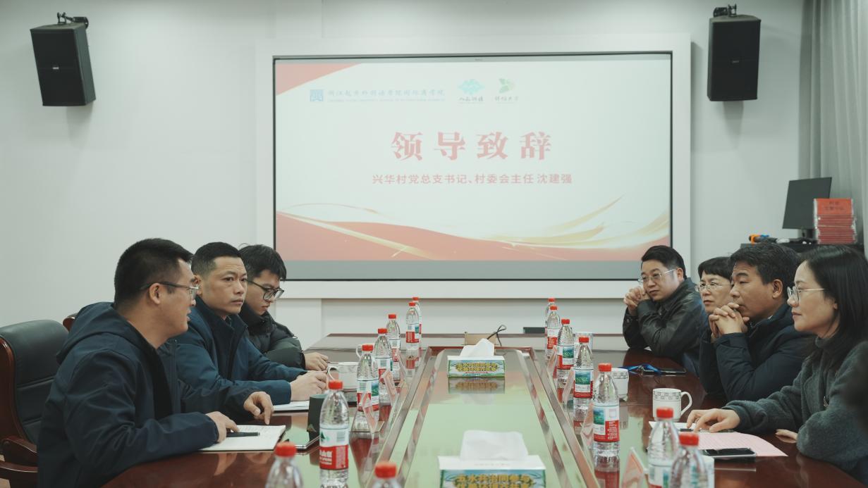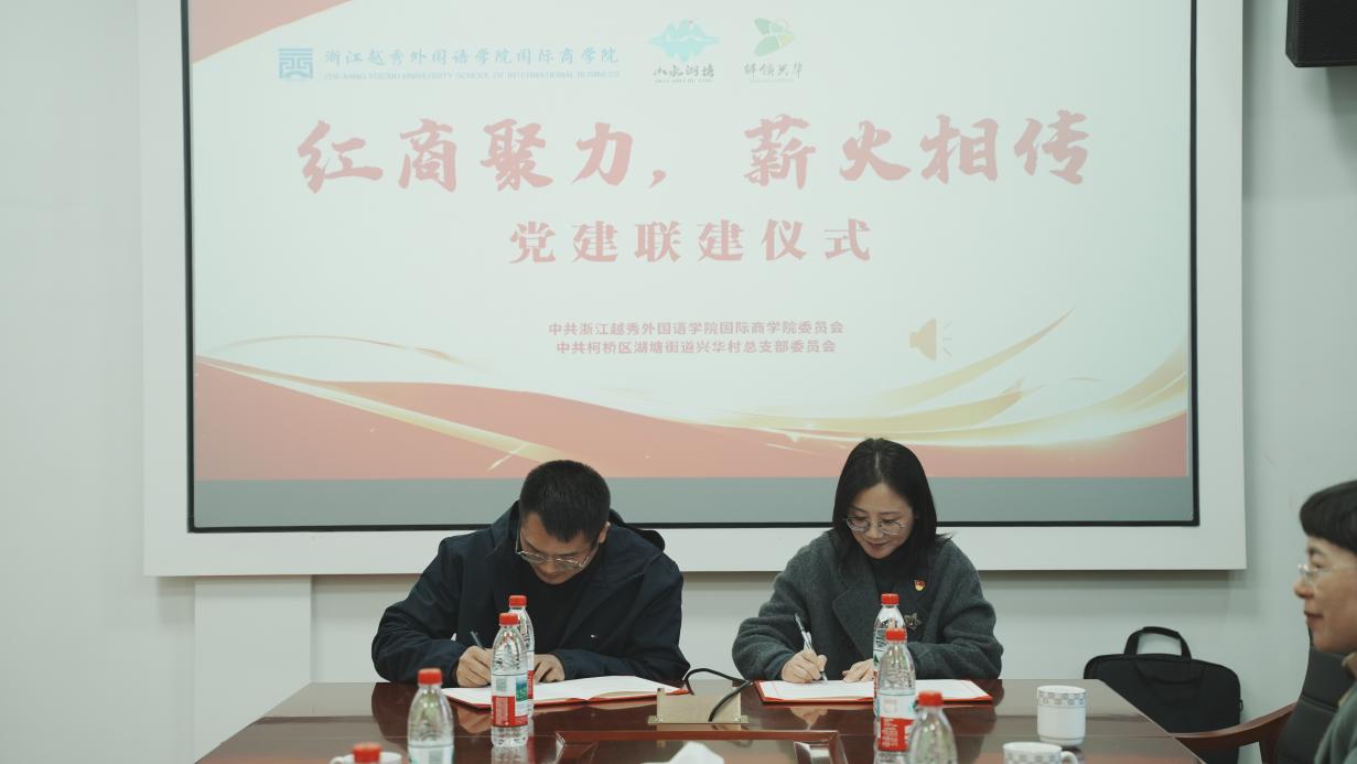 随后,党建联建签约仪式在兴华村会议室隆重举行。湖塘街道党工委相关负责人裘可钦出席仪式并讲话,他详细介绍了湖塘街道近年来的党建工作成效。“近年来,湖塘街道始终把基层党建作为重中之重,聚焦‘党建+产业发展’,依托鉴湖黄酒、菌菇等特色资源,培育党建引领下的特色产业集群。裘可钦表示,此次浙江越秀外国语学院国际商学院与兴华村的党建联建,是校地资源互补的生动实践,希望双方以党建为纽带,在人才培养、产业赋能等方面深度合作,为湖塘街道乡村振兴注入新活力。