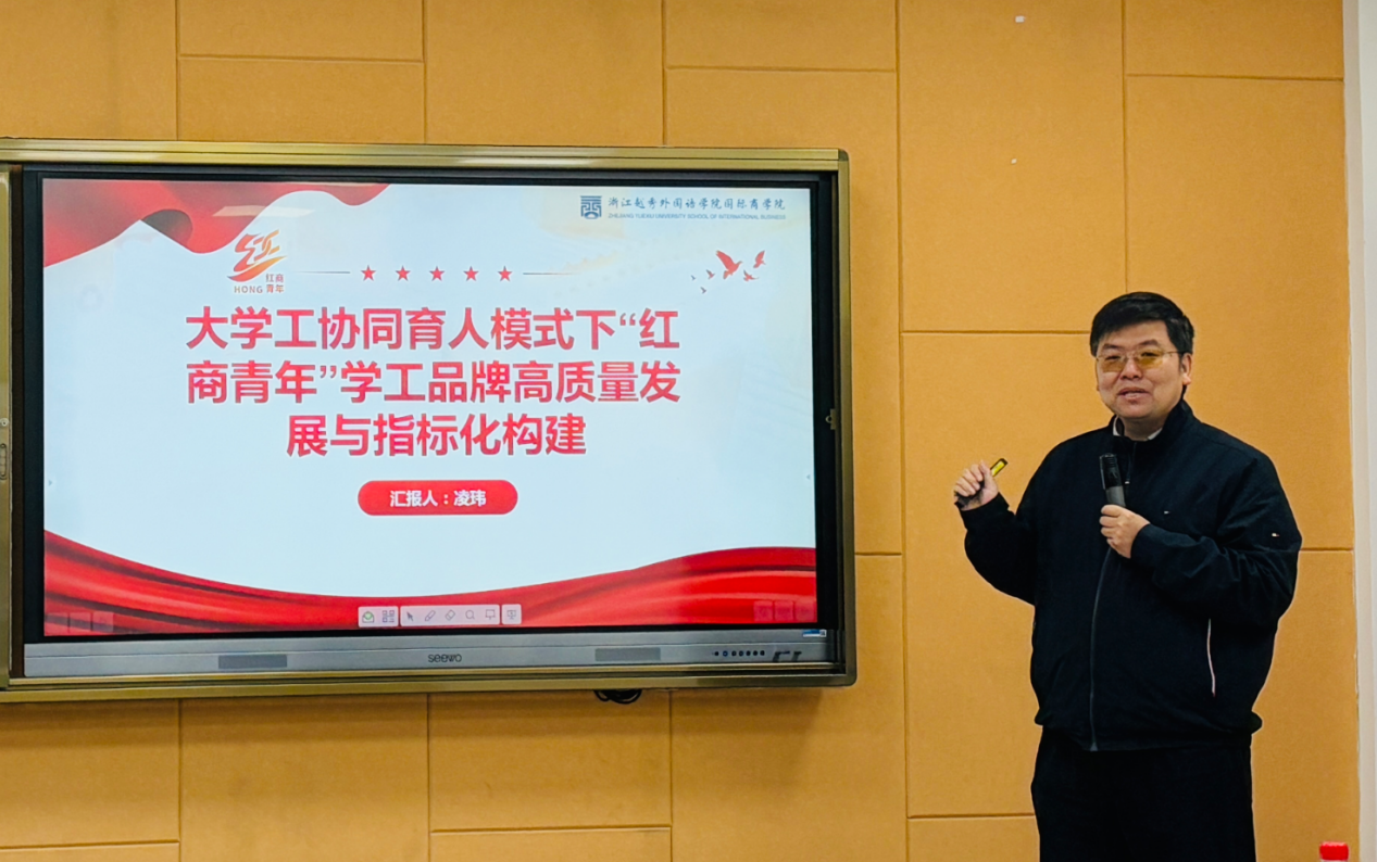 会上,凌玮副书记以 “红商铸魂” 为核心,围绕 “红商青年” 学工品牌打造作重点发言,系统阐述了文化制度育人、管理服务育人、创新发展育人三大体系的构建思路,明确了品牌建设的分阶段指标,细化落地举措,规划重点工作,旨在以体系化建设推动学工品牌高质量发展,致力于培养兼具国际视野与商科素养的新时代青年。